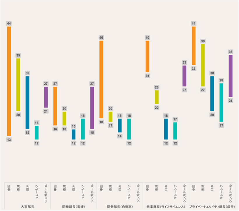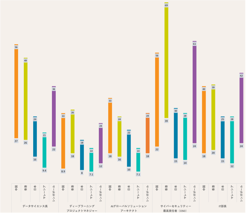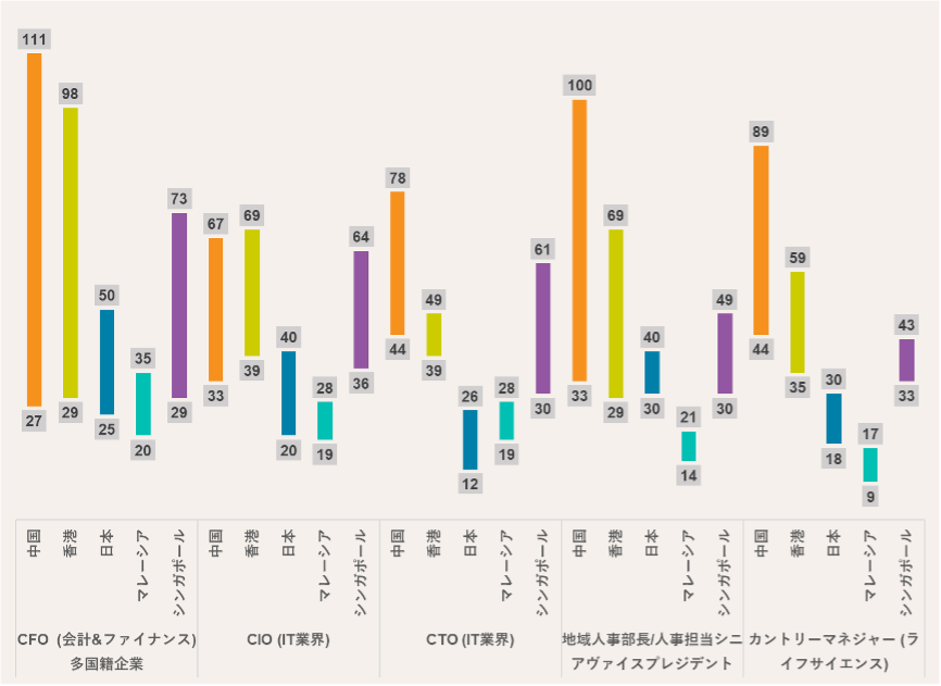 - トップIT人材や役員レベルなど、ハイスキル人材の給与においては中国、香港、シンガポールの給与が日本を上回るケースが多くみられます。
