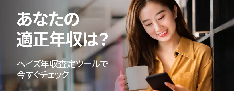 そんな見えづらい相場感を簡単にチェックできるのが、ヘイズ年収査定。ヘイズが取り扱った過去1年分の数千件の転職実績をもとに、13業界・約900職種のリアルな年収データをもとに算出。
